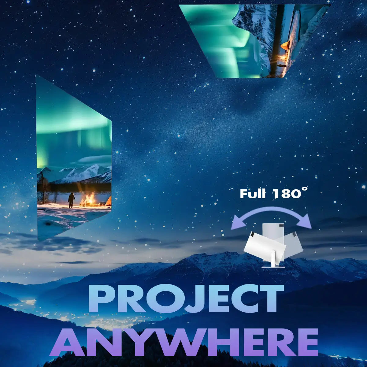 Transform any surface into a screen with the SkyLumi Infinity. Whether it's your walls, ceiling, or even the floor, this mini projector with a full 180° rotation adapts to your space and creates a dynamic viewing experience wherever you choose.